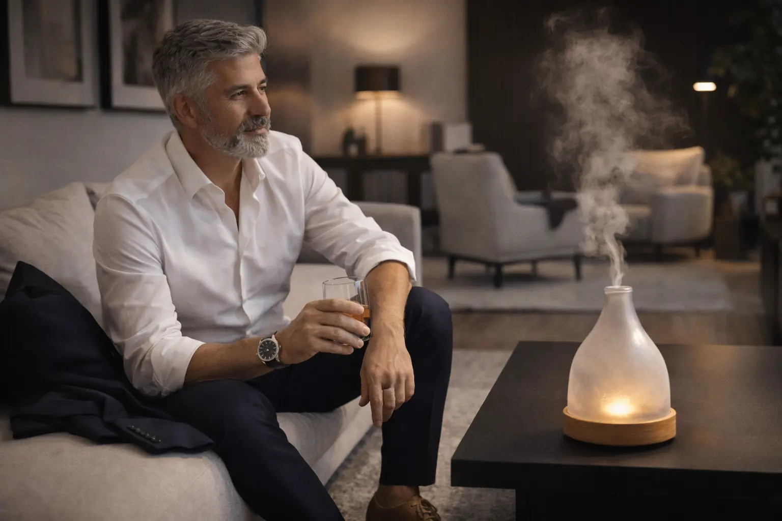 In his Notting Hill mews house, he activated Ilias, blending rosemary (for mental clarity) with vetiver (for emotional grounding). The nebulizing diffuser broke the oils into micro-droplets, filling the room with pure, therapeutic mist. Aromas had saved him during the divorce's quiet aftermath - when Anne's absence left echoes in every corner, he'd researched terpenes, sesquiterpenes, how eucalyptol cleared mental fog. Nebulization preserved their integrity; no heat to denature the healing compounds. It became ritual, then revelation: Control what you can breathe.